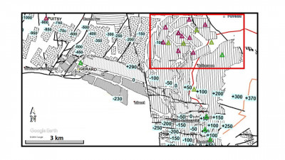 In France, coal mining activity in Provence basin has left many underground voids at different depths that causes land subsidence or collapses in areas of high population density. The coal basin of Provence is located about 20 km NNE of Marseille (Bouches-du-Rhône) and covers ~60 km² (Figure 8). The industrial exploitation lasts from the first half of the 19th century to 2003. With more than 500 km of tunnels and levels exploited up to 1 350 m deep, the Gardanne mine is the first mining area in SE France. During the exploitation, the miners had to pump the underground water. After 2003 the aquifer had recovered rapidly until 2010 when new pumps were installed to stabilize the level of underground water between – 30 m NGF and + 10 m NGF (at ~ 300 m depth). In order to prevent a potential hazard of rupture of pillars (may generate small earthquakes), accompanied by surface effects (subsidence), Ineris is operating a microseismic monitoring permanent network of 5 stations.