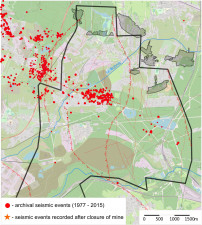 The Polish part of the Upper Silesian Coal Basin (USCB) in the area of interest for the PostMinQuake project we can divide for area with still working mines and areas with closed mines (see Fig. 5). The north- eastern part of the USCB is the area of already closed mines. The last of them – Kazimierz Juliusz – was closed in 2016. Earlier, due to the safety reasons the water table was lowered to the approximate depth 700 m. Currently, the process of flooding the mine is in progress.